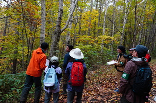 これ以上ない見事な秋晴れのなか学校林散策会に参加しました。10月も半ばを過ぎたというのに昼間の最高気温は20℃超え,風もなく暖かい日。私は老犬と一緒だったので最後尾からのんびり歩かせてもらいました。作業道は大きな朴葉やミズナラの葉がこんもり。ツタウルシが赤~オレンジにグラデーションを成してカラマツやトドマツを飾るように色づいて美しかったです。アンタッチャブルの注意植物ツタウルシが,こんな...