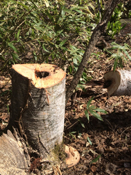 シイタケは原木の太さの4倍以上の菌を植え込むということで専用のドリルで穴を開け、それに棒駒をトンカチで打ち込むのですが、力を入れすぎてめり込んだり(ゴメンネ)もしましたが何とか順調に進み、アラッ楽しい、もう少しとも思ったのですがそこまで。そんな美味しいことばかりがある訳がなーいっ。